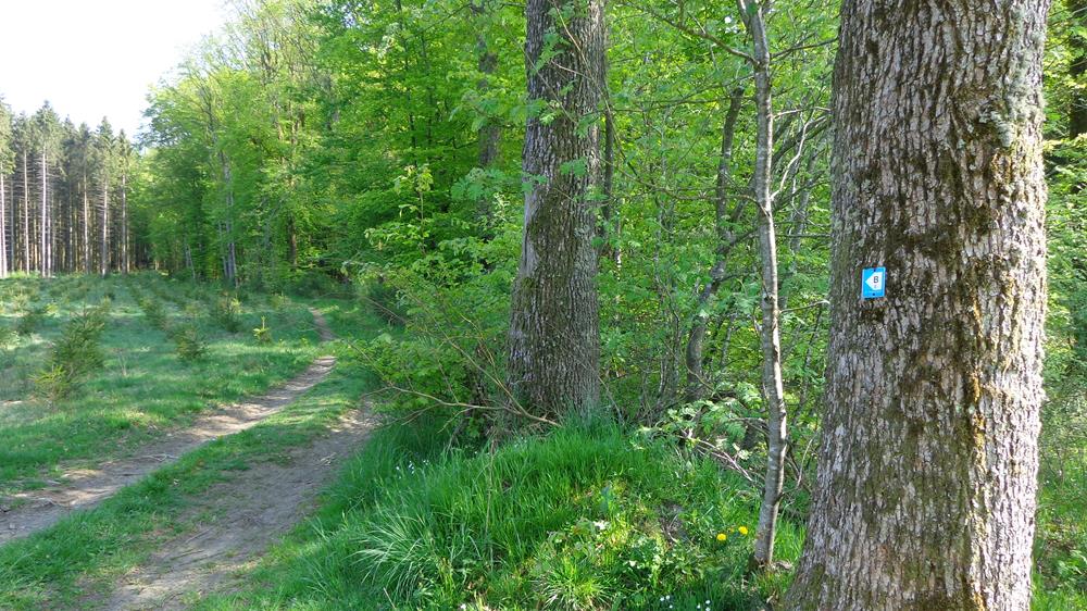 Starting point of this hike is at the train station in Troisvierges. The walkers go over the parking on the left side and follow the light rising cycle path. After a short time period, you will cross a stream and follow the path, which will lead you into the spruce forest, before you will arrive up upon a hill.