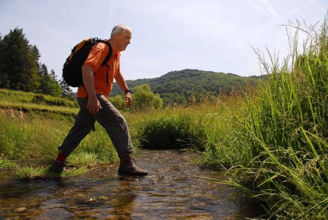 Hikers follow a path to the south. At the end of the village, you will find an old wayside cross of sandstone on the left side of the road.                                                                                                                             This was built in the time of the 30-year war (1618-1648). A few meters further the path branches off to the left and leads to the Galgenberg, where a wonderful view over the nature park Our can be enjoyed.